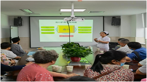 医院副院长蒋谷芬亲切致辞,充分肯定本次活动的意义,希望病友们都能有所收获。医院开展延续护理,服务群众矢志不渝!静疗小组专科护士罗艳玲老师宣讲的主题是“呵护静脉”,围绕PICC导管的维护相关知识进行深入浅出的讲解,内容通俗易懂,现场互动效果很好,深受大家喜欢,得到病友的一致好评。伤口造口小组国际造口师徐春艳老师以“造口患者的居家护理及健康”为宣讲主题,强调造口家庭护理的重要性,针对患者日常生活中遇到的相关问题,传授简便解决的小技巧及如何处理并发症等,让病友树立战胜疾病的信心。