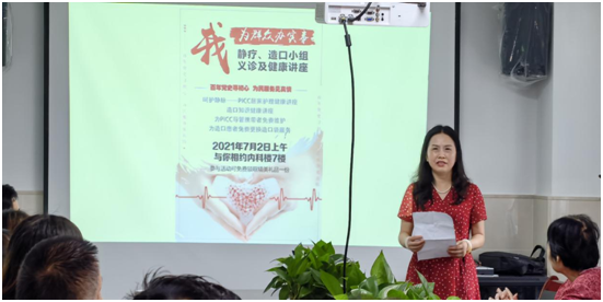 为庆祝中国共产党建党100周年,深入推进党史学习教育“我为群众办实事”,7月2日上午,我院护理部静疗小组携手伤口造口小组举办PICC导管及造口维护健康讲座,众多病友及家属参加。