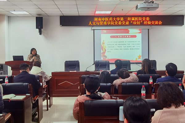 为了扎实推进全省党建工作标杆院系的培育与建设工作,3月11日下午,我院党委书记杨声辉率队一行30余人,前往湖南中医药大学人文与管理学院开展党建“双创”工作经验交流活动,学习该院在“全国党建工作标杆院系”建设中的经验做法。湖南中医药大学人文与管理学院党委书记章小纯携班子成员及专职组织委员、党支部书记热情接待并召开了专题交流会。