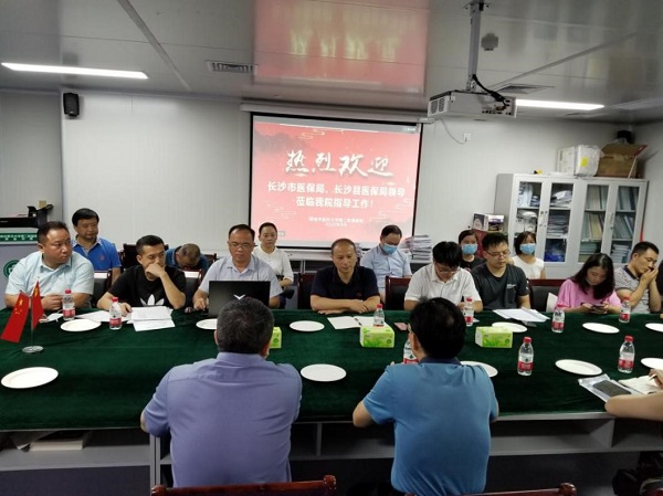 8月12日,由长沙市医疗保障局稽核部杨斌部长和长沙县医疗保障局周岳林主任带队的医疗保险专项检查组十余位专家莅临我院,根据《湖南省基本医疗保险监督管理办法》及我院与各级医保局签订的医保服务协议,对我院在协议期间医保政策执行情况、协议履约情况、医疗服务项目收费情况进行专项督导检查。我院党委书记杨声辉、主管院长游柏稳、医保物价管理部王海燕部长及相关科室人员热情接待并配合完成专项检查。