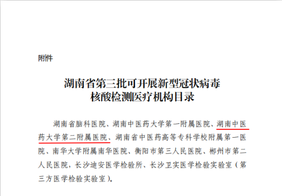 为进一步落实新型冠状病毒感染的肺炎“早发现、早报告、早诊断、早隔离、早治疗”工作要求,最大限度为疫情防控和患者救治争取时间,湖南中医药大学第二附属医院检验科严格按照湖南省卫生健康委员会《关于启动医疗机构开展新型冠状病毒核酸检测工作的通知》和《关于增加新型冠状病毒核酸检测定点医疗机构的通知》等有关要求紧锣密鼓的开展了相关准备工作,并选派了两名思想过硬、工作能力突出的技术骨干李成龙、徐丹赴湘雅医院进行相关进修培训。25日医院获批作为我省第三批可开展新型冠状病毒核酸检测的定点医疗机构(文件附后),将于近期开展新型冠状病毒核酸检测工作。