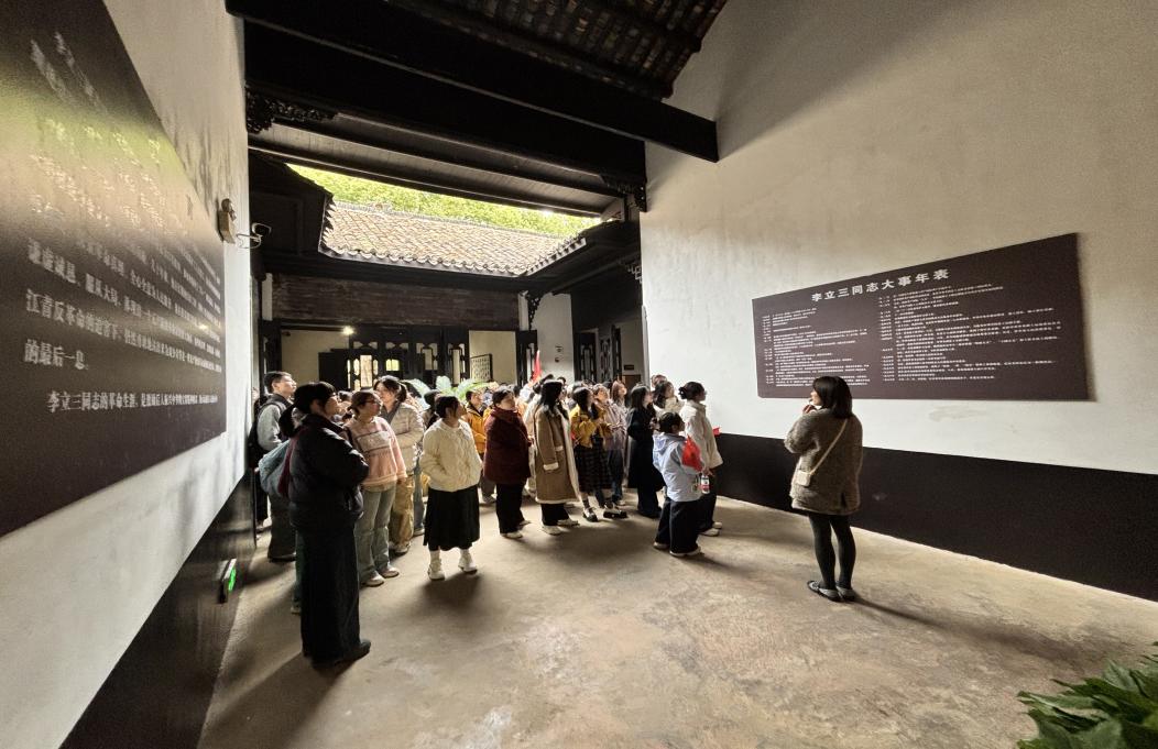 随后,队伍前往历经数百年的书院——渌江书院,这里不仅是醴陵人文教育的重要象征,更在近代红色历史上留下了深刻印记。早期革命活动家如李立三、左权等曾在此求学或开展革命活动,进步思想在此萌芽、传播。同志们于此感受浓厚的文化氛围与历史积淀,体会革命先辈在求学时期胸怀天下、探寻救国救民真理的壮志豪情。书院所承载的崇文重教传统与红色革命历史交织融合,让大家对“教育救国”、“革命启智”有了更直观、更深刻的理解。