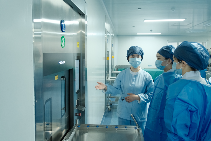 随后,佘冬梅带领参会人员开启了全流程参观。在去污区,大家亲眼见证了使用后的手术器械如何通过手工预处理、机械清洗、超声漂洗等多道工序,去除血渍、污渍与微生物;在检查包装区,工作人员借助放大镜,逐一检查器械的洁净度与功能完整性,按照手术需求精准配包,每一个包装都标注清晰的灭菌信息与有效期;在灭菌区,脉动真空灭菌器的运行参数实时显示,生物监测、化学监测的双重质控流程,让在场人员直观感受到灭菌环节的严谨有序;在无菌物品存放区,分类存放的无菌包整齐排列,先进的追溯系统实现了每一件器械的全生命周期可查,从回收、清洗到发放,每一步都有据可依、有源可溯。