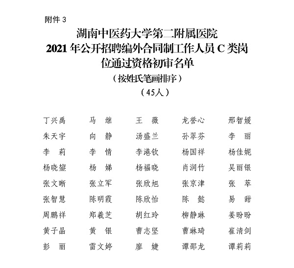 3.湖南中医药大学第二附属医院2021年公开招聘编外合同制工作人员C类岗位通过资格初审人员名单