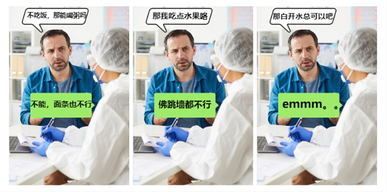 值得注意的是,很多病人以为不吃饭就等于没吃东西,喝可乐喝果汁不等于喝水,这个观点是错误的哦!