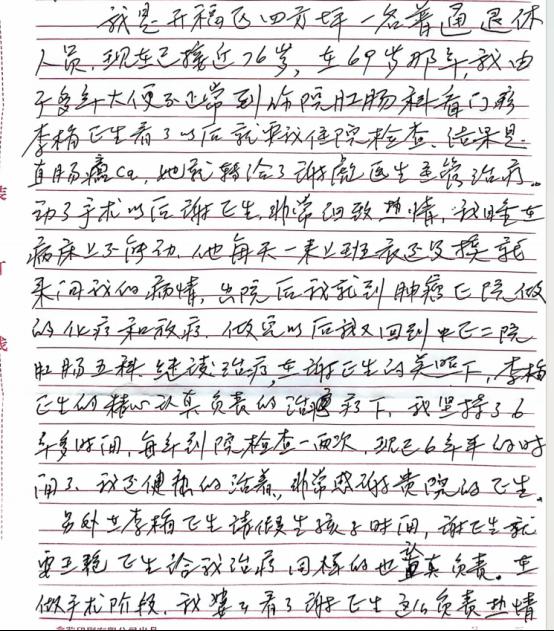 2024年元旦前,一封特殊的手写信被送到了湖南中医药大学第二附属医院肛肠五科医护人员手中。送信的是70多岁的邓奶奶,老人家表示,我老伴要不是碰到你们医院的好医生精准医治,现在不可能这么精神地活着。