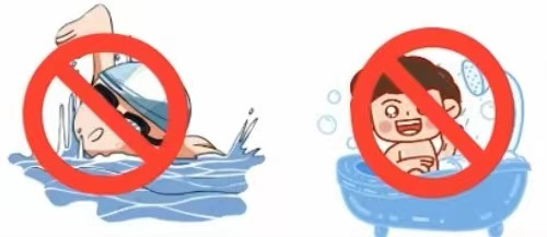 ③ 可以沐浴:用保鲜膜缠绕2-3周,大于敷料边缘3-5cm,裹上干毛巾,然后再用保鲜膜包裹固定或者戴上PICC防水保护套,并在沐浴时举起置管侧手臂,洗澡后及时去除防水保护套,淋浴后及时检查敷贴有无浸水松脱,穿刺点是否干燥,如不慎将敷料打湿及时就医进行更换;