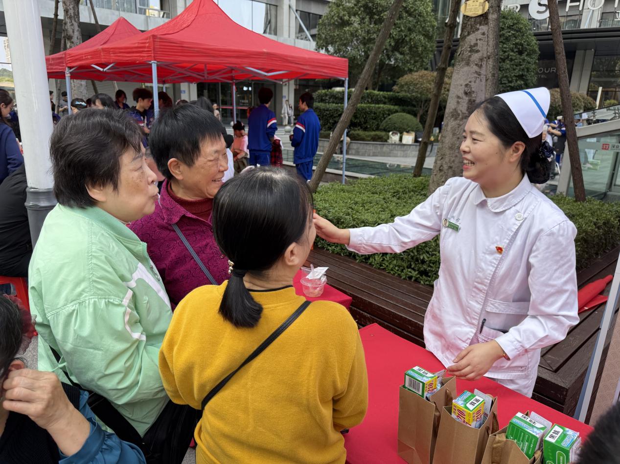 熊护士长与两名护士则分工协作,一边发放脊柱健康宣传手册,一边详细讲解日常脊柱保养知识,如正确的坐姿站姿、腰背肌功能锻炼方法等。同时,还在现场开展中医特色护理服务,如耳穴压豆,通过在耳部相应穴位贴压药籽,帮助居民缓解失眠、头痛、颈腰椎疼痛等亚健康问题,受到大家的热烈欢迎。
