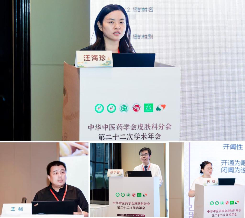我院皮肤中心教研室主任王畅、皮肤科副主任张予晋、护士长黄雯婷及副主任医师黄盼、主治医师严伊宁等一行参会。团队通过8场专题报告、7次学术主持及多例疑难病例研讨,构建起立体化的学术展示矩阵。从临床诊疗方案到科研创新成果,从中医特色疗法到护理干预体系,全方位呈现了中西医结合诊疗皮肤病的独特优势。
