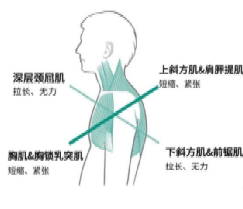 肌肉失衡链:胸大肌、胸小肌缩短后,会使菱形肌、斜方肌下束被拉长,从而导致肩胛骨前伸(形成翼状肩胛),增加肩峰撞击的风险。