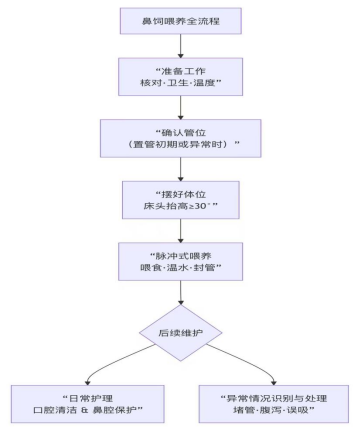 以下是居家鼻饲护理的关键流程与注意事项,可总结为以下流程图: