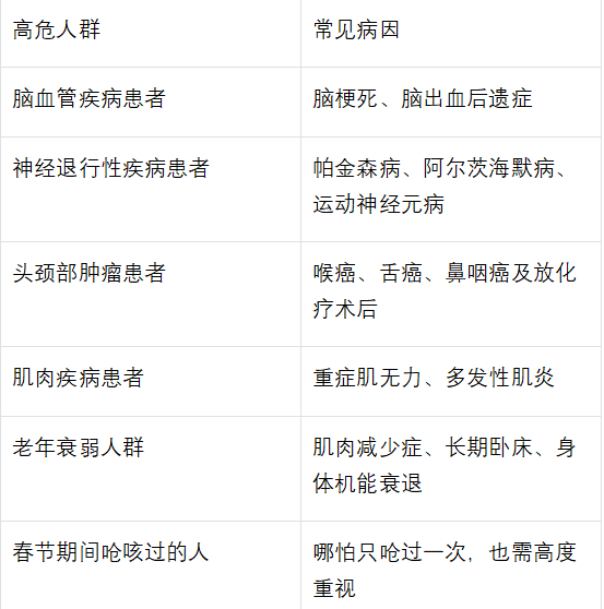 并非只有高龄老人需要关注吞咽问题,以下几类高危人群,都是节后吞咽功能筛查的重点对象: