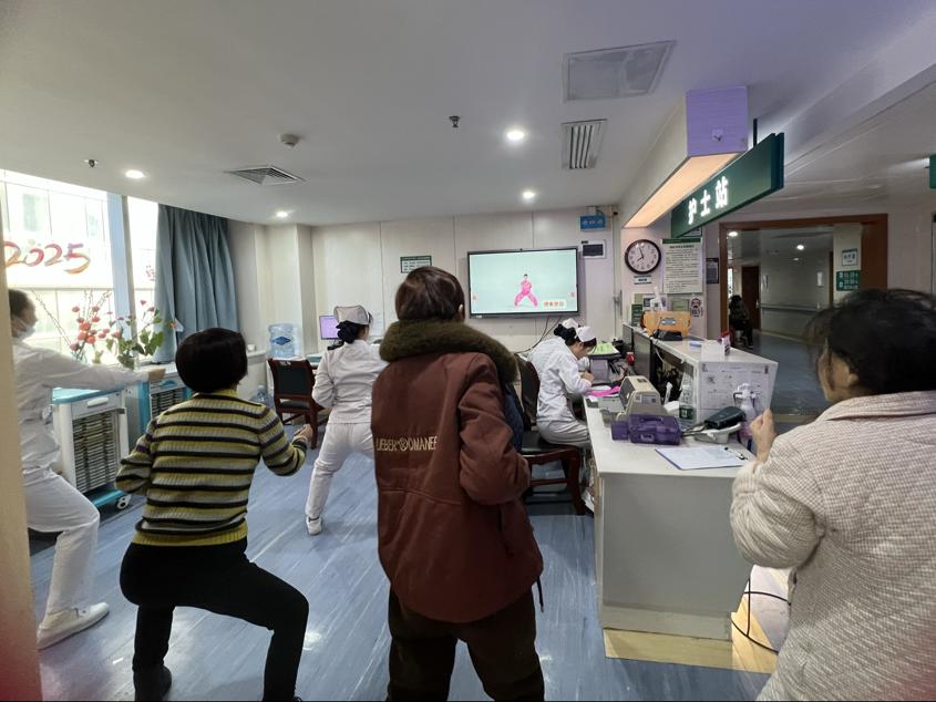 每日养生操,激活正能量:早晨7:45,医护人员带领大家一同练习 “八段锦”“拍八虚”等中医养生操。在舒缓的音乐中,大家一起活动筋骨、疏通经络,让“既病防变、未病先防”的理念,成为康复路上有力的支持。