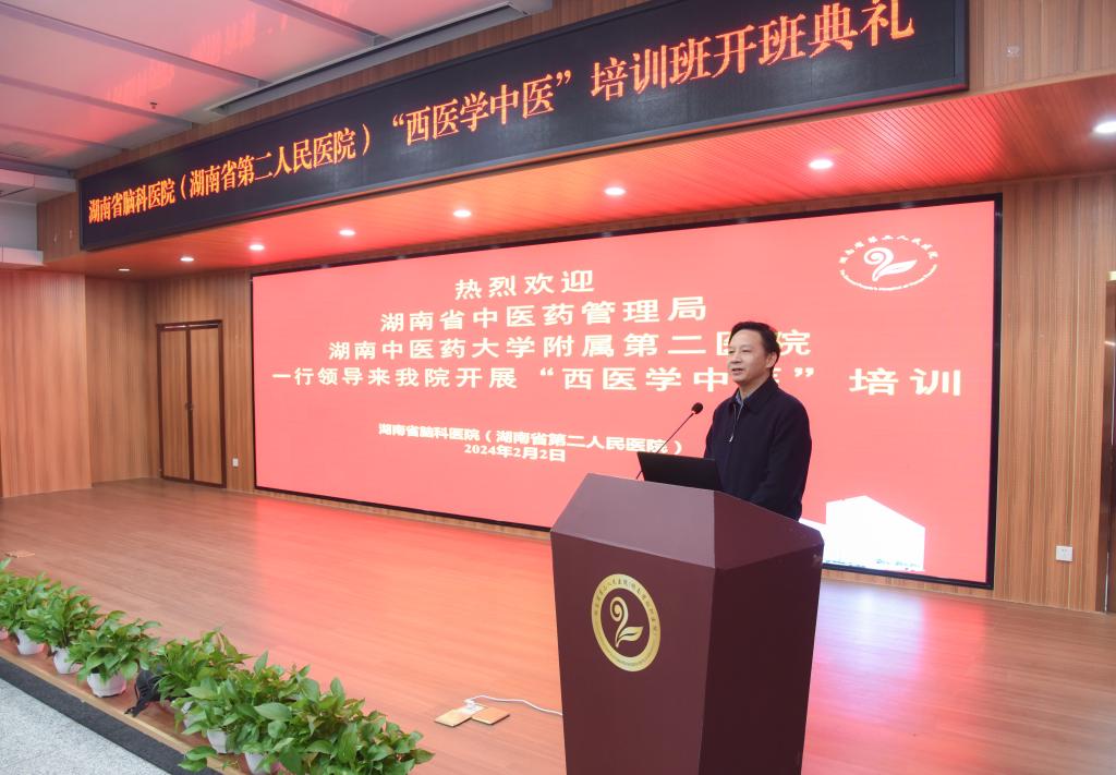 湖南省脑科医院党委书记蔡宏坤在致辞中表示,医院高度重视西学中培训工作,对湖南中医药大学第二附属医院的高度支持表示由衷感谢,希望通过两年的培训学习,提高医务人员综合业务能力。