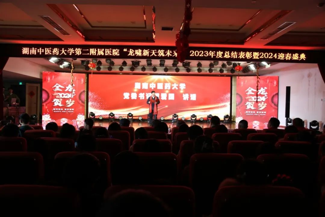 玉兔辞旧岁,祥龙贺新春。2月2日下午,湖南中医药大学第二附属医院2023年度总结表彰暨2024迎春盛典在华佗楼25楼隆重举办。国医大师孙光荣、全国名中医袁长津、湖南中医药大学党委书记戴爱国等领导和嘉宾以及医院领导班子全体成员、职工代表等齐聚一堂。
