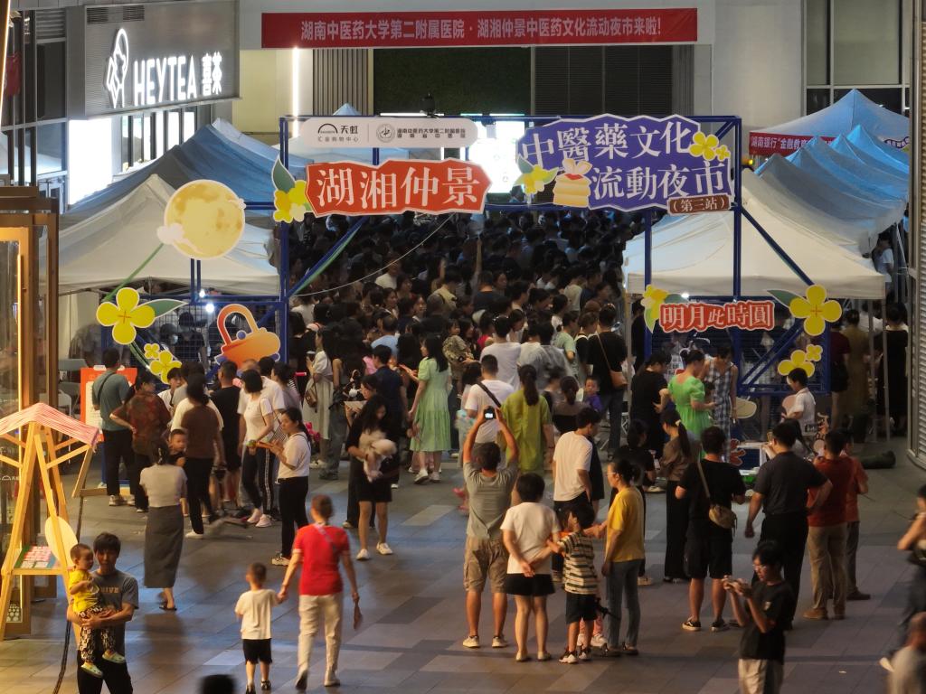 暑退九霄净,秋澄万景清。中秋佳节将至,9月14日晚,由我院举办的湖湘仲景中医药文化流动夜市第三站在长沙市雨花区汇金天虹购物中心叠谷花园温馨启幕。