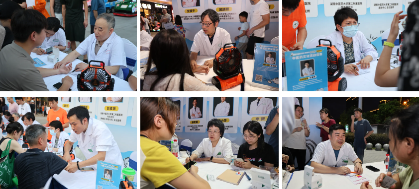 在名中医专家义诊区,龙铁牛、王勇、吴清明三位湖南省名中医领衔,肺病科主任医师彭素娟、骨伤中心主任医师徐无忌、肾病内分泌科主任医师周珂、经典经方门诊主任医师江建锋、消化内科主任医师祁双林、针灸推拿康复中心主任医师付磊、妇科主任医师匡丽君、皮肤中心主任医师李小莎、老年病科主任李新等专家坐镇,针对快递员、外卖员长期日晒、久坐、饮食不规律等职业特点,以及这一职业人群中常见的颈椎劳损、关节疼痛、肠胃病等,提供把脉问诊、针灸、拔罐等中医特色诊疗服务和“一对一”健康咨询。