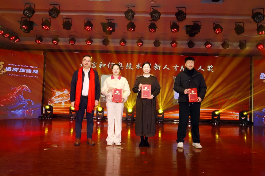 医院党委委员、副院长谢勇颁发“仲景中医药文化园建设项目突出贡献科室”“通信和信息技术创新人才AI达人奖”奖项。