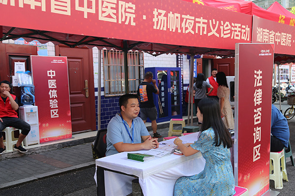 专家普法、健康理疗、爱心义诊、趣味答题……7月12日,由湖南省中医药管理局主办,我院承办,东屯渡街道办事处、扬帆夜市协办的“名医来到家门口”中医药法主题宣传暨义诊活动、中医药科普知识进社区活动在扬帆小区成功举行。