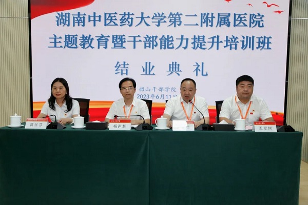 6月11日下午,湖南中医药大学第二附属医院2023年第一期主题教育暨干部能力提升培训班在韶山干部学院圆满完成各项学习任务,结业典礼在韶山干部学院教学楼215报告厅举行。