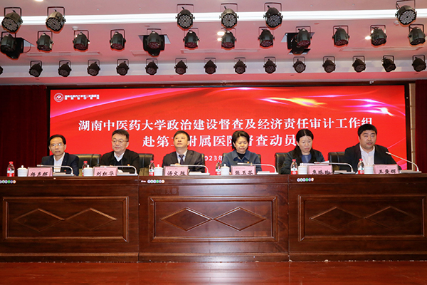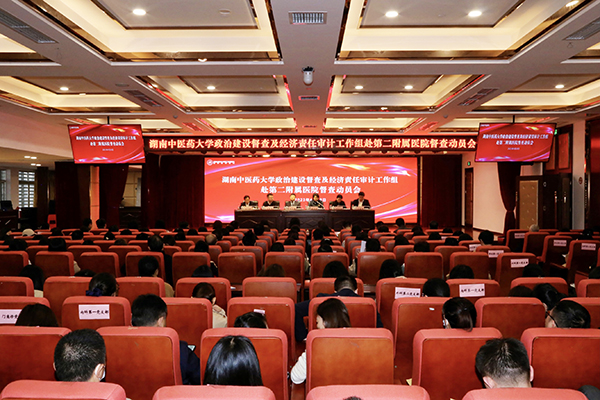 4月28日上午,湖南中医药大学政治建设督查及经济责任审计工作组赴第二附属医院督查动员会在我院华佗楼25楼多功能会议厅召开。湖南中医药大学党委副书记汤文胜,党委委员、纪委书记张玉芬,党委委员、副校长刘红华,党委委员、组织人事部部长、督查组选人用人专项小组组长焦珞珈,纪委副书记、监察专员办公室主任、督查组组长、督查组政治监督专项小组组长易辉,宣传统战部常务副部长、督查组意识形态专项小组组长章小纯,审计处处长、督查组经济责任审计专项小组组长邓寿应等领导出席,督察组10余名专家代表参加会议。
