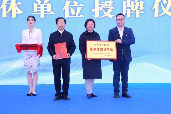 接下来,湖南中医药大学第二附属医院与开福区街道卫生服务中心签订医联体协议,通泰街街道社区卫生服务中心、秀峰街道社区卫生服务中心、新河街道社区卫生服务中心等16家社区卫生服务中心依次上台,向湖南中医药大学第二附属医院党委书记杨声辉递交医联体协议,医院院长王国佐向医联体单位授牌。