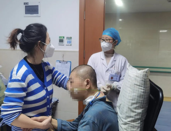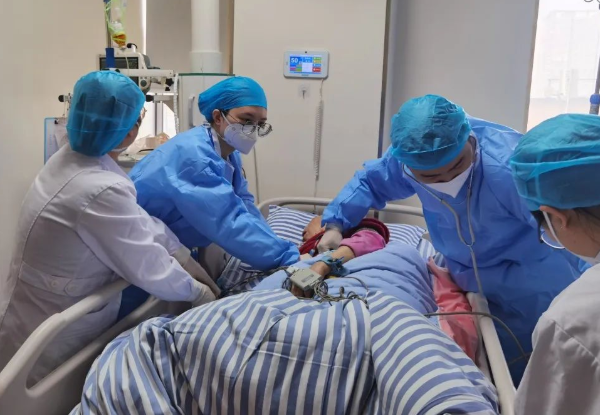 刘叶辉主任及田小华护士长立即组织抢救,为患者进行气管插管,呼吸机辅助通气,给予规范的镇静、营养、器官功能支持。护理团队每天为其行俯卧位通气,同时运用中药进行醒脑开窍、化痰,西药抗感染、抗病毒及抗炎、止咳化痰、增强机体免疫力等治疗,胡嗲嗲病情明显好转,逐渐恢复清醒状态,呼吸平稳。目前,已脱离呼吸机拔除气管插管,准备择期进行手术治疗。