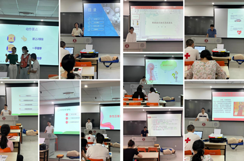 此次为期5天的培训包括2天线上理论课+3天线下实操课及试讲课,大家学习了红十字会运动知识普及、心肺复苏、自动体外除颤器(AED)使用、气道梗阻、现场创伤救护(心肺复苏、止血、包扎、骨折固定、搬运等)、意外伤害的相关救护等知识,进一步掌握了现场急救的基本技能。