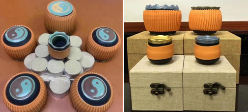 火龙罐综合灸是集推拿、艾灸、揉痧、点穴、熨烫于一体的中医康复理疗技术。别看它罐小,内里大有乾坤。罐体含阴阳、配五行、走四象、合六气。阴阳太极图金银相嵌,数十种推拿手法在四象“上下左右”方向上同时完成。其手法始终要求旋转,正转反转,如同龙卷风一样不停地振动、摇摆、旋转,驱邪外出,达到祛风湿、化淤血、调阴阳、补气血的目的。