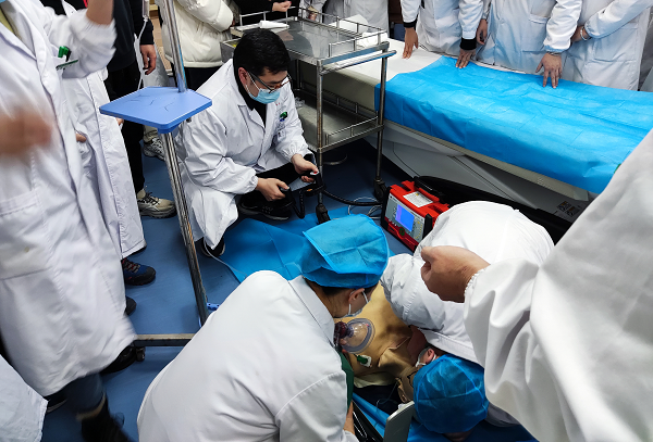 随着2022年春节越来越近,为进一步巩固医务人员对增强造影剂过敏反应急救能力,我院放射影像科在医务部组织下,联合急诊科、ICU等科室,于1月21日中午,在内科楼放射影像科2号CT机房开展了针对增强患者出现造影剂中、重度过敏及外渗的急救演练。