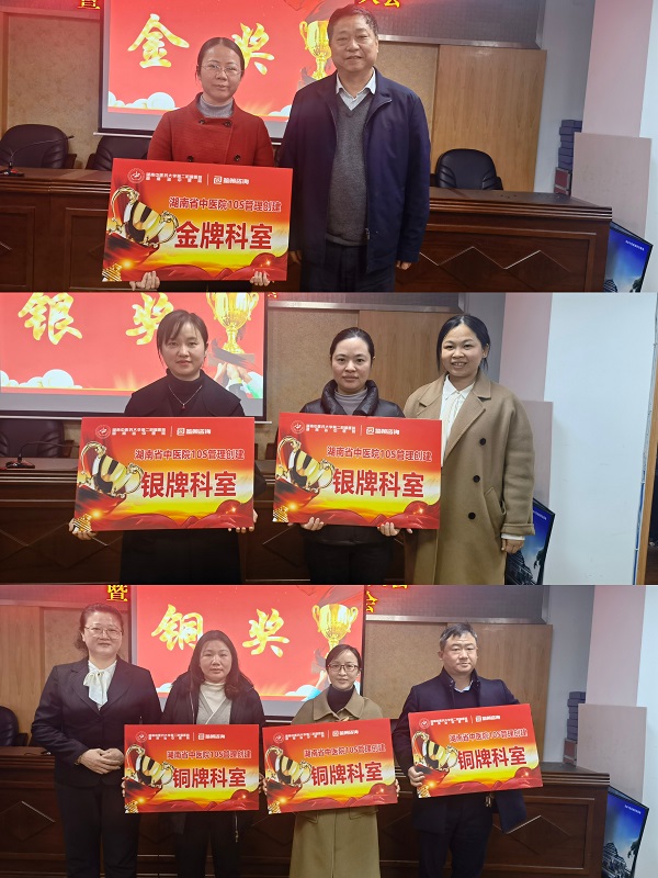 会议宣布了第二批获奖科室名单,经过院领导、成都鉴策咨询老师们综合检查和认真严格地评比,皮肤科荣获金奖, 骨伤一科、骨伤二科荣获银奖,神经内科、普通外科、肛肠五科荣获铜奖。院长李木清、10S管理办公室主任贺霞、成都鉴策咨询郑纯老师为获奖科室颁奖。