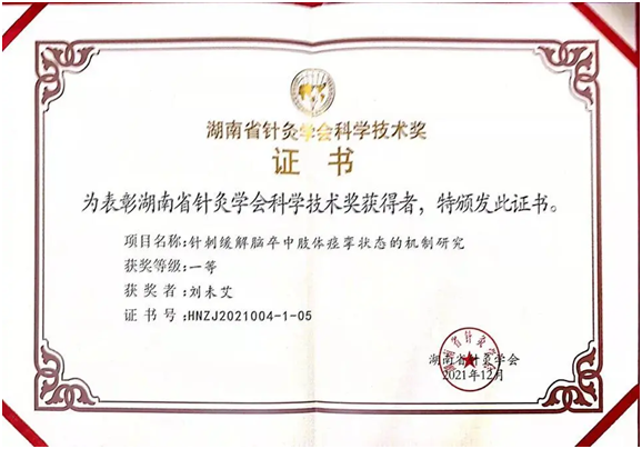 喜报!我院针灸推拿康复科荣获第二届湖南省针灸学会科学技术奖