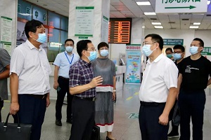 陈国辉一行对我院院区建设情况进行了实地考察,对放射影像科、互联网医院等科室进行了实地调研。