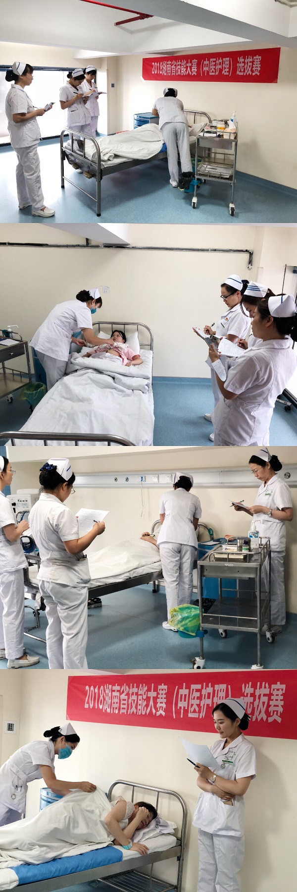 为进一步加强护理队伍建设,提高护理队伍整体技能水平,为病人提供更优质的护理服务, 9月12日,护理部在医疗综合大楼24楼护理操作培训基地举办了2018湖南省技能大赛(中医护理)选拔赛。