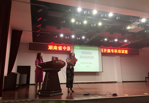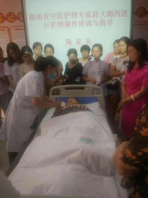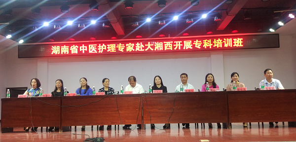 为进一步弘扬中医药文化,传播中医药知识,提高中医护理水平,落实专科护理岗位培训制度,指导“湖南省首届中医药职业技能竞赛中医护理赛项”的训练。9月21日,在湖南省中医药管理局医政医管处副调研员胡利民的带领下,我院护理部主任蒋谷芬组织中医特色组周红霞护士长和何花护士长同中医附一的8位护理专家赴大湘西开展专科培训及中医知识进社区活动。来自全省14个市州的200余名护理骨干参加了此次活动。