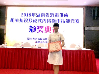 为了进一步贯彻消毒供应国家行业标准,规范消毒供应工作流程,提高从业人员专业操作技能水平,推动落实硬式內镜集中管理,9月27日,由湖南省消毒供应质量控制中心主办的2018年湖南省消毒供应相关知识及硬式內镜操作技能竞赛在长沙举办。大赛邀请江西省消毒供应代表队参加,与来自湖南省直、江西省直、益阳市、邵阳市、湘西等15支代表队同台竞技,我院消毒供应中心佘冬梅主管护师作为湖南省直代表队队员参赛,以总分第一的成绩摘得团体冠军的桂冠。