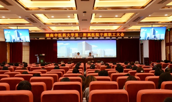 4月9日下午,我院干部职工大会在外科楼25楼多功能会议厅召开。医院在家党委领导班子成员、护士长及以上中层干部、各科室职工代表职工代表等300余人参加了会议。大会由医院院长李木清主持。