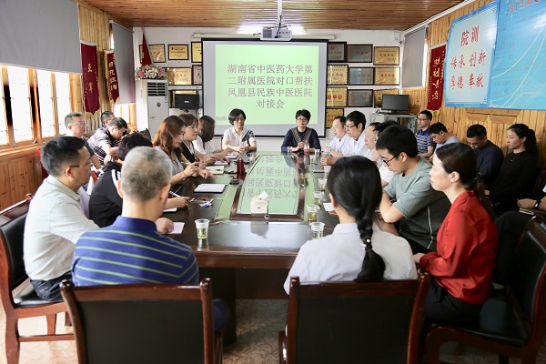 义诊结束后,双方召开了对口支援对接会,就医院管理、专科建设、人才培养、对口支援“精准化”等各方面深入交流了意见。游柏稳副院长表示: “授之以鱼,不如授之以渔”,医院一直高度重视对口扶贫工作,长期派驻10余名医疗技术骨干驻点帮扶,将继续按照习近平总书记强调的“精准扶贫”要求,进一步加强沟通交流力度,加强人才派遣力度,加强技术帮扶的精准度,充分发挥中医特色技术优势,为凤凰县人民提供更优质的医疗服务。