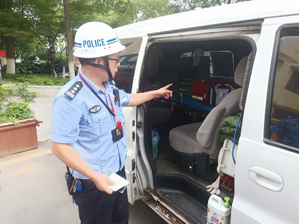7月11日上午9:35分,在我院急诊黄线救护车停放处发现一台疑似黑救护车,经过陈龙、谢佳、周斌三名当班人员的认真检查,确定其为一辆“黑救护车”,工作人员及时通知交警前来对该车辆及人员进行查验并处理。