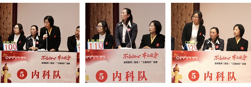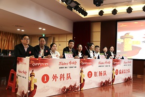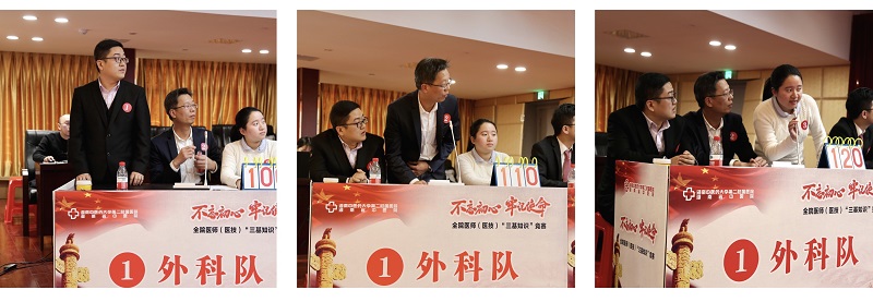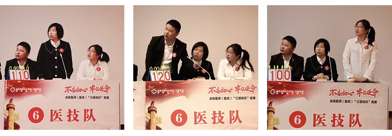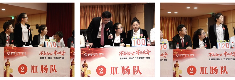 此次竞赛参赛队员均来自医院的各临床科室及医技科室,从前阶段医务部组织的2019年度“三基”知识理论考试成绩优异者中选拨组成。以学科为单位,分为肛肠队、骨伤队、外科队、内科队、医技队、临床综合队共6队,每队3名,共选拔出18名选手参加竞赛。比赛分必答题、抢答题、风险题三个环节评出最终排名。