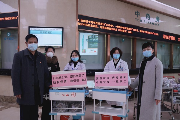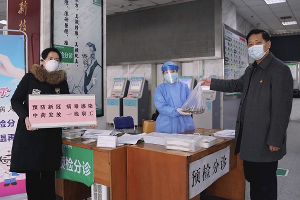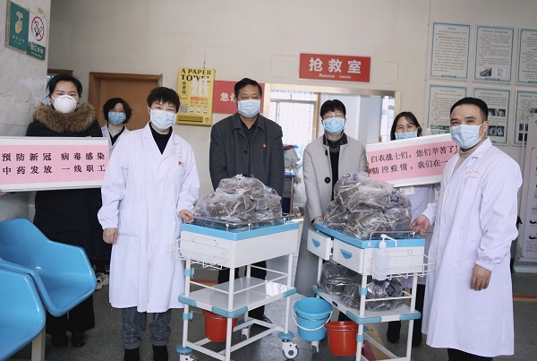 院领导将熬制好的预防中药送到医护人员手中,感谢他们的坚守和付出,同时叮嘱大家,在高危环境下要注重自身防护,保护好自己和家人健康,为防控新冠感染肺炎疫情做出应有的贡献。