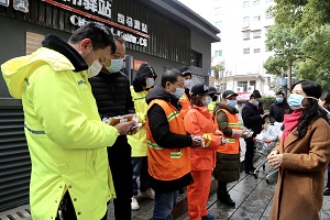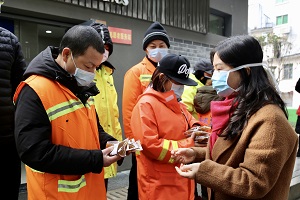 副院长蒋谷芬带领药剂支部的党员志愿者向望麓园环卫所环卫工人发放中药汤剂1000袋。环卫所负责人李奎和工人们一起接受了捐赠,并表示衷心感谢:“我们每天工作在一线,不停地在路上来回巡查,确实不知道谁带有感染源,哪个是被感染者,感谢省中医附二给我们赠送这些预防病毒的药品,让我们感到贴心和暖心!”