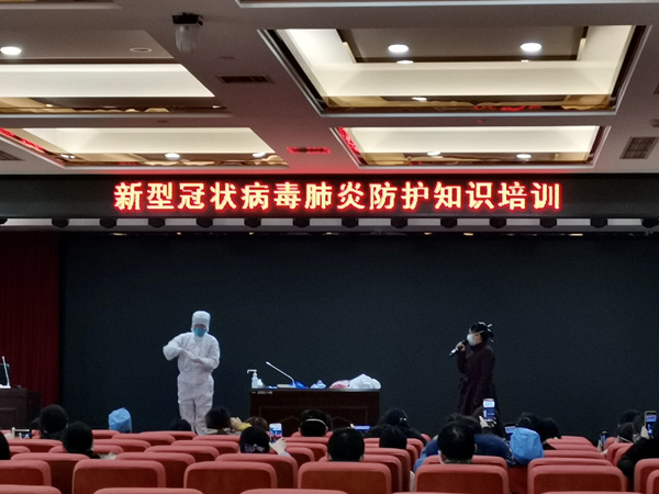 疫情防控战全面打响之后,院感科于1月28日开始对急诊科、预检分诊、隔离病房、发热门诊、志愿者进行了新型冠状病毒肺炎一线医务人员防控知识分批培训;1月30日及1月31日对我院赴武汉驰援医护人员进行新型冠状病毒肺炎指南及个人防护进行培训;1月30日~2月3日分科室进行手卫生及个人防护培训并要求人人掌握人人过关,对重点科室进行现场督导现场培训,督促重点科室完成应急预案及流程;2月4日在发热病人留观区现场演练进出隔离区流程并要求所有发热病人留观区医护都掌握并人人过关。
