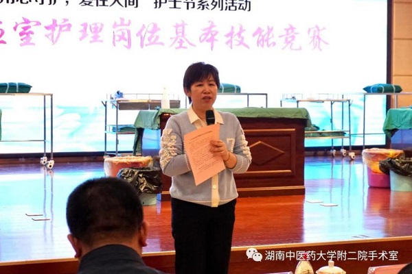本次业务技能“大比武”得到了各部门领导的广泛关注与重视,特邀请医务部副部长董扬州、骨伤六科主任曾赛华、胸外科主任欧阳志等各界领导担任此次大赛评委。护理部部长朱诗林对本次大赛寄予殷切希望并致辞,她指出:手术室、供应室的护士姐妹们要珍惜这次学习机会,取长补短,共同进步。护士长也要加强管理,不断提升综合能力,把专科做大、做强、做精,争取成为行内的佼佼者。