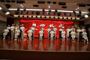 继而,新入护士及新护士长的拜师仪式庄重举行,导师端坐在上,弟子向导师行拜师礼,敬拜师茶。为帮助新入护士及新上任护士长更快地适应岗位,我院实施新入护士规培导师制及新护士长导师制。