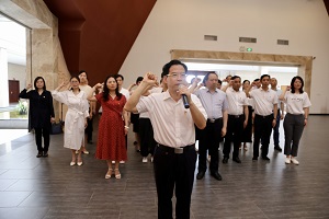 当日下午,医院领导班子、全体党总支书记、党支部书记、党工团部门负责人来到秋收起义纪念馆,开展党史学习教育“学史力行”专题学习,重温红色记忆,领略伟人风采,感受信仰力量,接受革命精神洗礼和爱国主义教育。在纪念馆,党委书记杨声辉率领全体党员面向党旗、举起右手,再次庄严宣誓,并向秋收起义革命先烈群雕敬献花篮。讲解员带领大家分“高举新旗帜”“开辟新道路”“创建新军队”“苦难辉煌”四个部分参观学习,秋收起义纪念馆邱烨讲师以《文家市的抉择》为主题给全体党员上了一堂生动的党课,讲述了中国革命的“关键抉择”。随后,参会人员围绕“学史力行”进行专题学习并展开热烈研讨。