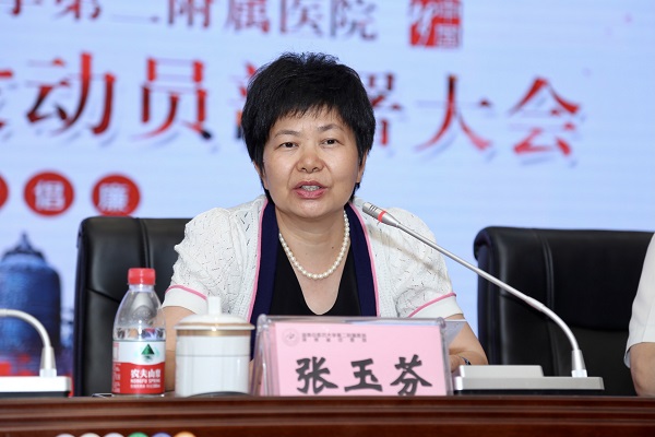校(院)党委委员、纪委书记张玉芬作总结讲话,对清廉医院建设提出工作要求:一是领悟新要求,全面抓好贯彻落实,坚持问题查办与风险防范“两手抓”,“严管”与“厚爱”相结合,一体推进不敢腐、不能腐、不想腐的实际行动;二是打好主动仗,切实推进责任落实,强化“四责协同”,加大对违反中央八项规定精神、医疗卫生行风建设“九不准”等行为问责追责力度;三是形成新风尚,持续推动正风肃纪,强化政治监督,深化廉政风险防控,持续纠治“四风”,加强医德医风教育,为进一步推动清廉湖南建设以及全省卫生事业健康发展做出新的更大贡献。