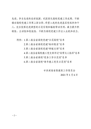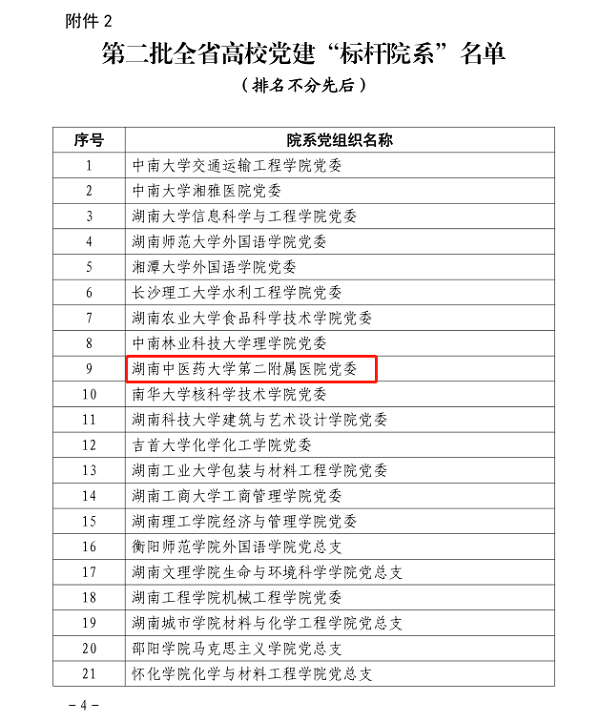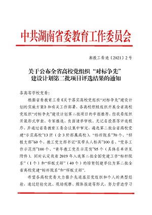 日前,湖南省委教育工委发布了《关于公布全省高校党组织“对标争先”建设计划第二批项目评选结果的通知》(湘教工委通〔2021〕2 号),我院党委成功入选第二批全省高校党建标杆院系。