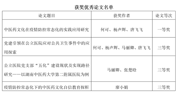 我院在湖南中医药大学2020年党建和思想政治工作研究论文征文活动中喜获佳绩