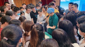 技能培训方面,刘思、马晓晴、谢宇雯、黎湘淮、舒崛东五位老师讲解了手术室基本技能操作并开展了洗手、穿脱手术衣等实践技能操作训练,现场对每位学员进行技能操作考核。